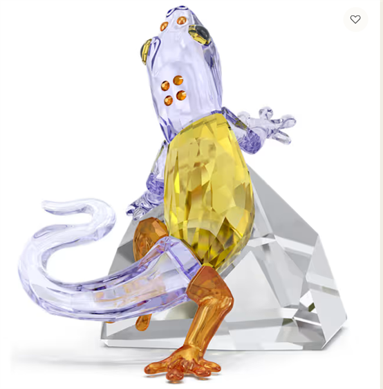 Questo curioso geco, che emerge dall’ombra arrampicandosi su una roccia per crogiolarsi al sole, rivela al mondo i suoi magnifici colori. Il design, realizzato con 437 sfaccettature e 6 singoli cristalli, mette in mostra una varietà di tonalità calde, tra cui giallo, arancione e lavanda. Esponilo in qualsiasi punto della tua casa: saprà sprigionare tutta la sua gioia ovunque. Oggetto decorativo. Non è un giocattolo. Non adatto ai bambini di età inferiore a 15 anni. Articolo nr.: 5693146 Dimensione: 5.5 x 5.7 x 6.6 cm Designer: Stefanie Nederegger Materiale: Cristalli Colore: Multicolore Collezione: Idyllia