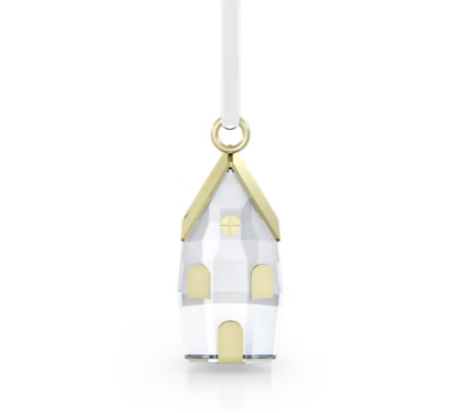 Piena della magia di Swarovski, questa decorazione di un'eleganza intramontabile raffigura una casa in miniatura con 62 sfaccettature di cristallo trasparente, splendidamente armonizzate con gli elementi in metallo spazzolato color oro champagne. La decorazione si completa con un nastrino in velluto bianco crema e simboleggia le festività e quel momento in cui gli affetti si riuniscono dopo tanto tempo. Oggetto decorativo. Non è un giocattolo. Non adatto a bambini di età inferiore ai 15 anni. Collezione: Holiday Magic Colore: Bianco Misura: 4.9 x 2.1 x 2.6 cm Materiale: Cristalli, Metallo finitura tono dorato champagne, Nastro di velluto Designer: Jasmin Oberarzbacher