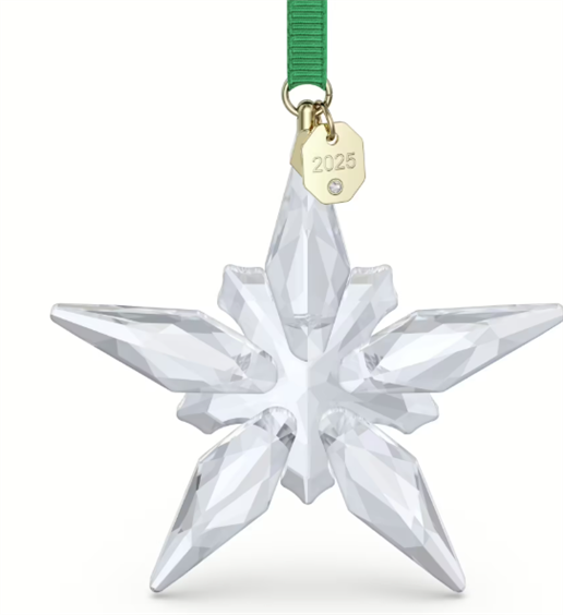 Accogli uno dei simboli più tradizionali delle feste con questa Annual Edition Decorazione Swarovski. Sospeso su un nastro gros-grain verde con dettagli in tonalità oro champagne, il design a forma di stella è magistralmente tagliato con 170 sfaccettature che catturano i raggi di luce, incarnando alla perfezione la complessa semplicità e la maestria tecnica di Swarovski. Il design si completa con un’incisione “2025”. Perfetta da appendere all’albero, a una finestra o in qualsiasi punto della casa, questa decorazione è un modo davvero meraviglioso per dare risalto alle tue celebrazioni delle feste. Oggetto decorativo. Non è un giocattolo. Non adatto ai bambini di età inferiore a 15 anni. Articolo nr.: 5691172 Collezione: Annual Edition Dimensione: 7.7 x 1.3 x 7.2 cm Designer: Michele Blasilli Materiale: Cristalli, Metallo, Nastro in rayon Colore: Bianco
