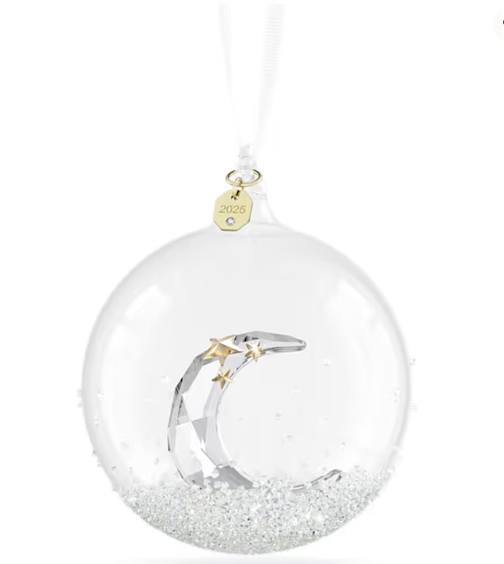 La Annual Edition Decorazione Pallina Swarovski per il 2025 è illuminata da un bagliore lunare, che la rende un dono intramontabile da condividere con i propri cari. La scintillante sfera in vetro è decorata con circa 2.200 cristalli ed è appesa a un nastro in gros-grain bianco con un’etichetta placcata in tonalità oro champagne con inciso l’anno 2025. All’interno si trova una serena luna crescente, ornata da stelle dorate e con 158 sfaccettature di precisione. Questa Annual Edition Decorazione Pallina è ideale per commemorare un compleanno, un matrimonio o un anniversario. Oggetto decorativo. Non è un giocattolo. Non adatto a bambini di età inferiore ai 15 anni. Articolo nr.: 5701865 Dimensione: 10.9 x 7 x 7 cm Designer: Michele Blasilli Materiale: Cristalli, Poliestere, Metallo finitura tono dorato champagne, Vetro Colore: Bianco Collezione: Annual Edition