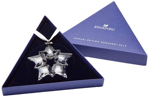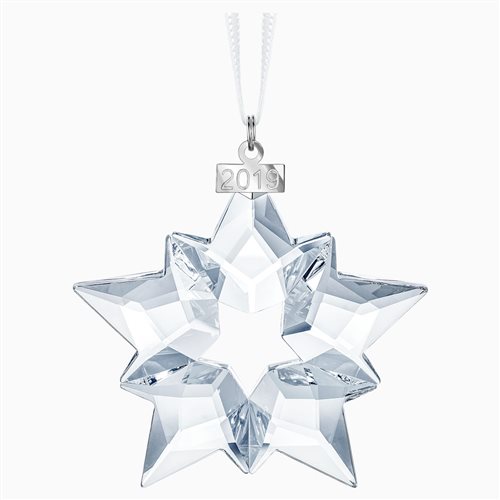 decorazione in cristallo swarovski clear, esclusiva per l'anno 2019, riporta infatti una targhetta metallica dove troviamo l'anno inciso. si appende con il nastro di raso bianco in dotazione