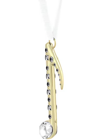 Crea armonia nel tuo arredo delle feste con questa raffinata decorazione con nota musicale. Sospesa a un nastro in gros-grain bianco, la lussuosa decorazione è realizzata in metallo in tonalità oro champagne lucido ed è impreziosita da cristalli Cry su entrambi i lati. Pensato per diffondere splendidi riflessi di luce per tutta la stagione, è un regalo unico per chiunque adori le gioiose melodie. Oggetto decorativo. Non è un giocattolo. Non adatto a bambini di età inferiore ai 15 anni. Articolo nr.: 5701500 Dimensione: 6 x 0.8 x 2.5 cm Designer: Parichehr Shirazi Materiale: Cristalli, Poliestere, Metallo finitura tono dorato champagne Colore: Color oro Collezione: Holiday Magic