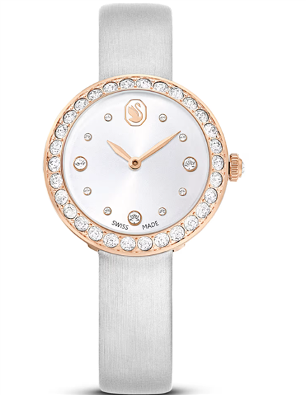 Riflettendo l’iconica forma dei gioielli Matrix Tennis di Swarovski, questo orologio si distingue per la sua eleganza impreziosita da cristalli. Il design da 30 mm in acciaio inossidabile presenta una finitura in tonalità oro rosa e un pavé di 30 cristalli Cry sulla lunetta. Il quadrante con motivo sunray è ulteriormente impreziosito da cristalli per gli indici delle ore e include il logo cigno a ore 12. Intorno al polso, il comfort è assicurato dal cinturino in pelle grigia, con finitura satinata e sistema a rilascio rapido. Questo orologio Swiss Made è resistente all’acqua fino a 50 metri ed è completato da un singolo cristallo incastonato nella corona. Indossalo insieme ai gioielli della famiglia Matrix Tennis per un look impeccabile. Articolo nr.: 5710105 Collezione: Matrix chrono Dimensioni della cassa: 30 mm x 30 mm Lunghezza del cinturino dell'orologio: 16.5 cm Materiale: Cristalli, PVD oro rosa Colore: Grigio Tipo di fermaglio: Fibbia Materiale del cinturino: Pelle di vitello italiana Prodotto in: Svizzera Meccanismo dell'orologio: Quarzo