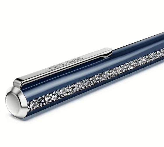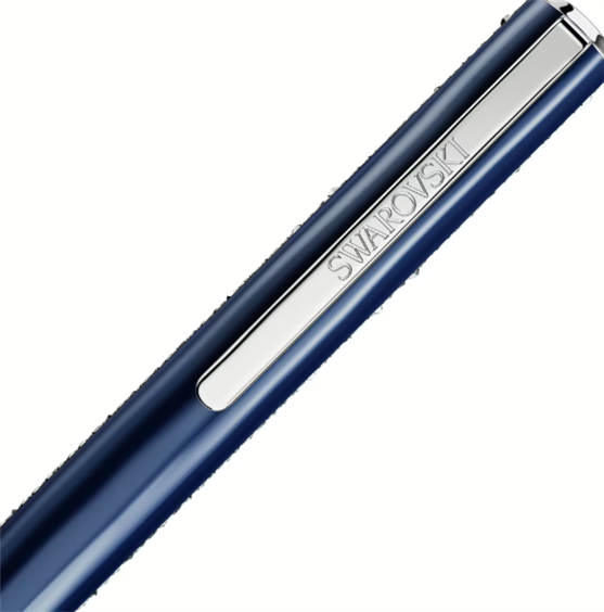 Penna a sfera da donna di Swarovski della collezione shimmer. Penna a sfera cromato con cristalli Swarovski Blu. Dimensione: 14.3 x 1 cm. Colorazione del cristallo blu. La referenza è 5707709 Questo articolo verrà spedito con Scatola Originale Swarovski se prevista dal brand