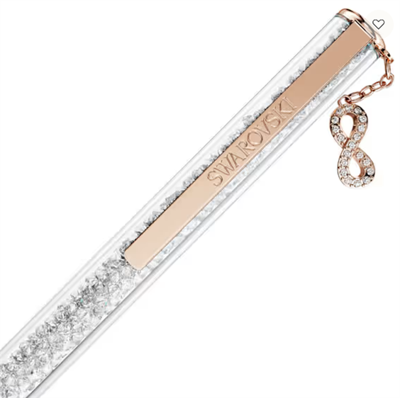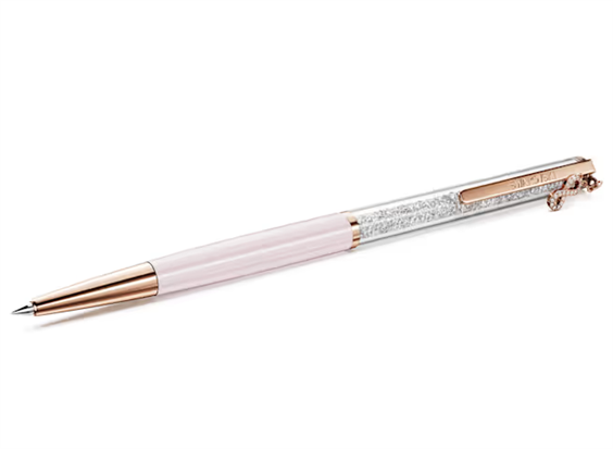Questa sottile penna a sfera è un accessorio senza tempo per una creatività infinita. Il design sottile è impreziosito da circa 400 cristalli Cry, visibili attraverso la lunga finestrella trasparente. Oltre al fusto laccato rosa, la penna presenta finiture in tonalità oro rosa e un charm dell’infinito per un tocco significativo ed eterno. Un regalo perfetto per te o per chiunque ami esprimersi con le parole. Le ricariche di inchiostro nero e blu sono disponibili per l’acquisto negli Swarovski store. Articolo nr.: 5728731 Collezione: Crystalline Silk Dimensione: 14.5 x 0.9 cm Materiale: Cristalli, Laccato rosa, Placcato color oro rosa Colore: Bianco Colore dell’inchiostro: Nero