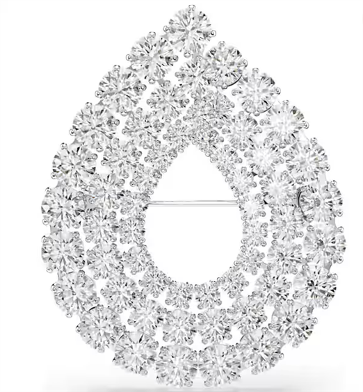 Con la sua scintillante forma di goccia di pioggia, questa spilla abbagliante aggiungerà un tocco di luce a qualsiasi outfit. Il design placcato rodio presenta tre anelli di Swarovski Zirconia taglio Round, proposti in tre diverse misure per il massimo del glamour. Una straordinaria dimostrazione del savoir-faire di Swarovski, perfetta da abbinare a un set di orecchini coordinati. Articolo nr.: 5714648 Collezione: Matrix Dimensione: 4.6 x 3.8 cm Materiale: Placcatura rodio, Zirconia Colore: Bianco