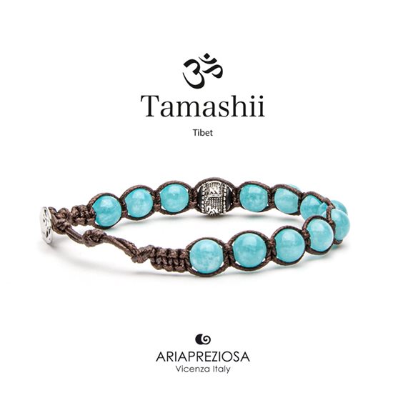 Bracciale tamashii tibetano realizzato con pietre naturali agata verde acqua.Il bracciale è arricchito da una ruota in argento 925°incisa con il mantra "OM MANI PADME HUM"del Buddha della compassione Cenresing Tra le numerose proprietà di questa pietra, nella variante verde acqua, ci sono quella legata alla protezione di bambini e anziani durante i viaggi e quella di sostenere gli amori, per così dire, maturi
