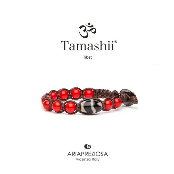 Tamashii Shonu SERENITA'con 11 pietre di agata rosso passione, la nuova collezione dedicata alle nuove generazioni. La caratteristica predominante è la pietra GZI in onice con raffigurati disegni e figure simboliche. Ogni simbolo corrisponde ad una forza di supporto ai Tantra classici per rafforzare e perseguire i principi della filosofia Buddhista. I bracciali sono composti da pietre di 6 mm e la lunghezza minima è di cm. 14, ma si può adattare a qualsiasi polso grazie alle asole presenti nel cordoncino.
