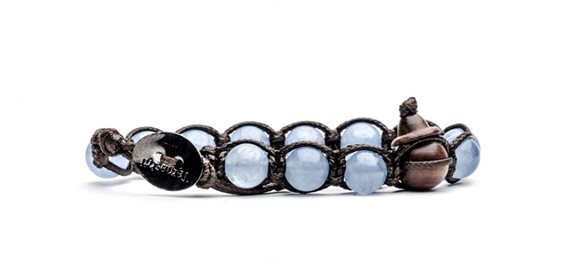 Bracciale originale tibetano Tamashii realizzato con pietre naturali AGATA AZZURRA (Blue Ocean Agate) Misura pietre: 6mm.