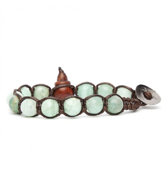 Bracciale Tamashii Green Quartz. Cordoncino marrone in cotone cerato. Taglia unica ma predisposto per adattarsi ad ogni polso. Il nome Quarzo deriva dalla parola greca "Krystallos Yalos", ossia cristallo trasparente. In natura è presente in numerose colorazioni ed ognuna di esse viene chiamata diversamente. Il Quarzo Verde è una pietra di bassa reperibilità già molto conosciuta ed usata in passato che infonde padronanza ed incoraggia a vincere la timidezza, facilitando inoltre il dissolvimento della collera e della rabbia. Il Tamashii® Quarzo verde è perfetto per tenere a freno il proprio eventuale lato impulsivo ed aiuta a dirigere questa grande energia verso qualcosa di più utile. MADE IN TIBET