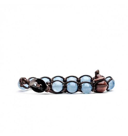 Bracciale Tamashii Agata Oceano. Cordoncino marrone in cotone cerato. Taglia unica ma predisposto per adattarsi ad ogni polso. L'Agata azzurra rappresenta il colore del cielo e dell'oceano, l'azzurro che per la cultura tibetana è il più importante dei colori e rappresenta la purezza, la saggezza e la pace. In questo caso particolare la tonalità di blu dona a questo Tamashii® un aspetto ancora più divino ed elevato. Questo Tamashii® è il bracciale che identifica il sacro. MADE IN TIBET