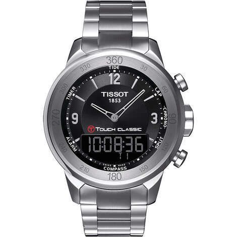 Orologio tattile multifunzione: bussola, marea, cronografo tempi intermedi e sul giro, due contatori per il conto alla rovescia, due sveglie, calendario perpetuo, secondo fuso orario e funzione retroilluminazione. Cassa e cinturino in acciaio con chiusura a farfalla e pulsanti, quadrante nero, movimento svizzero al quarzo, vetro zaffiro, diametro 42mm. W.R. 10 atm. Completamente Swiss Made