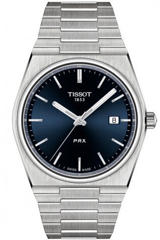 Nel 1978 Tissot creò un modello al quarzo, caratterizzato da una cassa sottile, indici stretti e un bracciale in acciaio. La sua ampia ansa orizzontale, tipica dell'epoca, era perfettamente integrata nella cassa piatta a forma di tonneau. Pochi anni dopo, Tissot ha registrato il nome PRX. "PR" sta per "preciso" e "robusto". La "X" sta per il numero romano dieci e per la pressione di 10 bar che l'orologio è in grado di sopportare. Nel 2021 Tissot ha presentato il PRX 40205, È una versione moderna del modello precedente. La cassa in acciaio inossidabile 316L del Tissot PRX 40205 ha un diametro di 40 mm. Ha una forma leggermente tonneau ed è ornato da una lunetta stretta e rotonda. Ai lati, spazzolate verticalmente, finiture arrotondate si alternano a sfaccettature lucide. Il Tissot PRX 40205 Quartz è dotato di un quadrante con un motivo a raggiera nero o blu in combinazione con indici e lancette nichelati. Esiste anche una variante con quadrante grigio argento satinato con indici e lancette color oro rosa, una combinazione di colori che ricorda la fine degli anni '70. La flessibilità e morbidezza delle maglie ne fanno un vero successo di design ergonomico e trasmettono uno straordinario comfort. Le lancette del PRX 40 205 sono dotate di un rivestimento SuperLumiNova® e sono posizionate l'una sull'altra con uno spazio minimo. Ciò consente di avvicinare il quadrante al vetro dell'orologio. L'effetto ottico ottenuto dai designer Tissot fa sembrare la cassa dell'orologio ancora più piatta e sottile di quanto non sia in realtà.