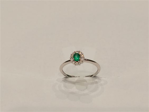 Anello Oro Bianco 750 (18 carati). Pietra Principale Smeraldo 0,19 ct. Diamanti 0,05 ct