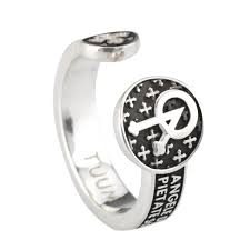 INFINITUUM ANGELO IN ARGENTO BRUNITO in rilievo la preghiera dell'Angelo di Dio nella lingua Latina