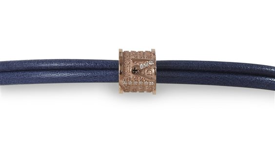 BRACCIALE TUUM COLLEZIONE INCIPIT FILUM IN PELLE BLU, CON UN CHARM IN ORO ROSA 9KT MATER CON DIAMANTI INCASTONATI.