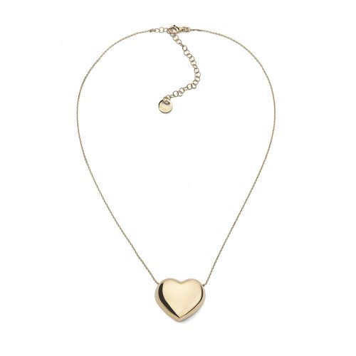 Collana in argento 925 dorato con pendente a forma di cuore grande bombato. Chiusura a moschettone ed anelli di allungamento. Misura 45-50,00 cm. Un gioiello dalle linee morbide e d'effetto pensato per colpire ogni sguardo. Non temere di osare e gioca con la sensualità romantica del ciondolo a forma di cuore. Regala un po' di dolcezza a te e a chi ami.
